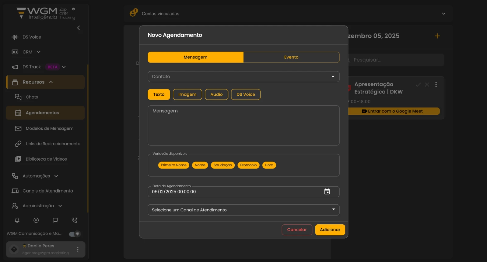 Organize a agenda do seu time comercial marcando reuniões e calls diretamente pelo chat.